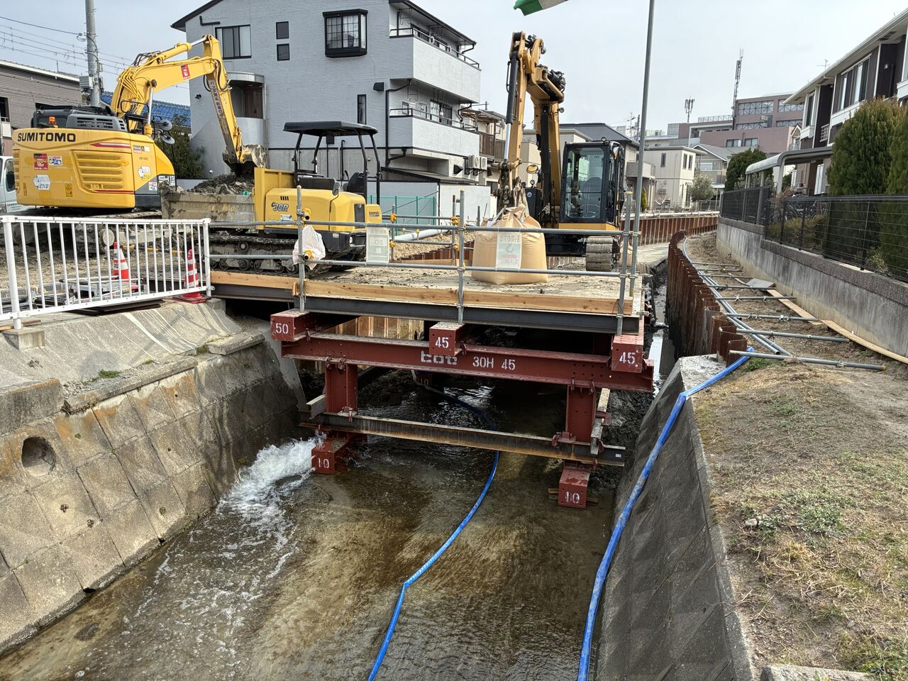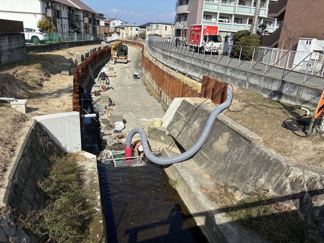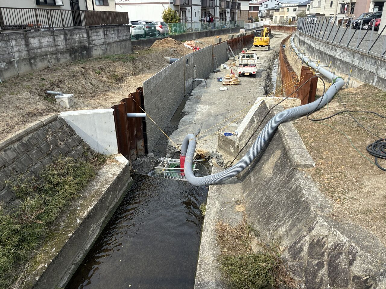 半川締切りでは、施工性が落ちるから、完全ドライにして一気に施工するほうが良いという判断でしょうか。
