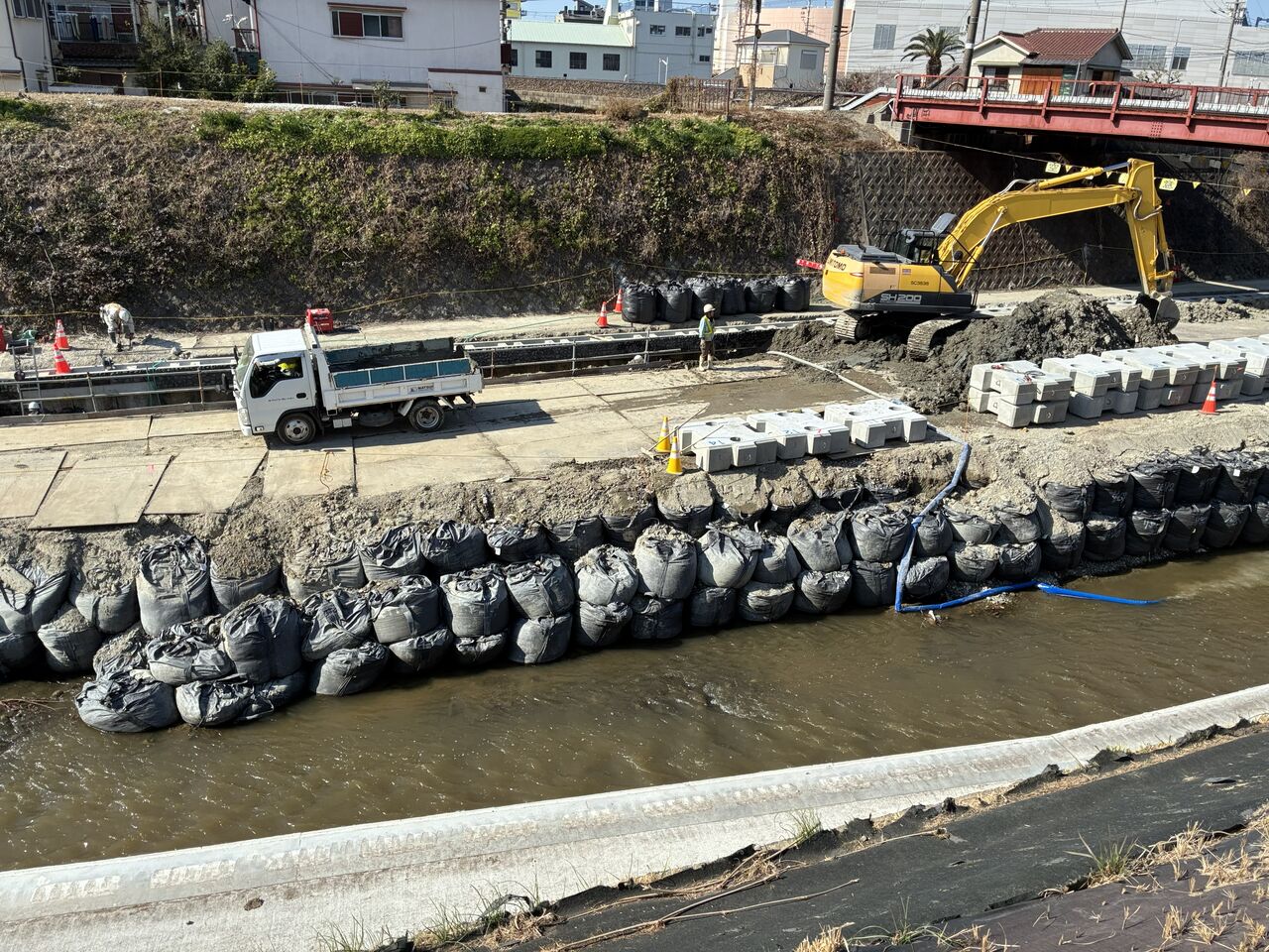 大型土のうの使い方や、護床ブロックのストックも参考になります。