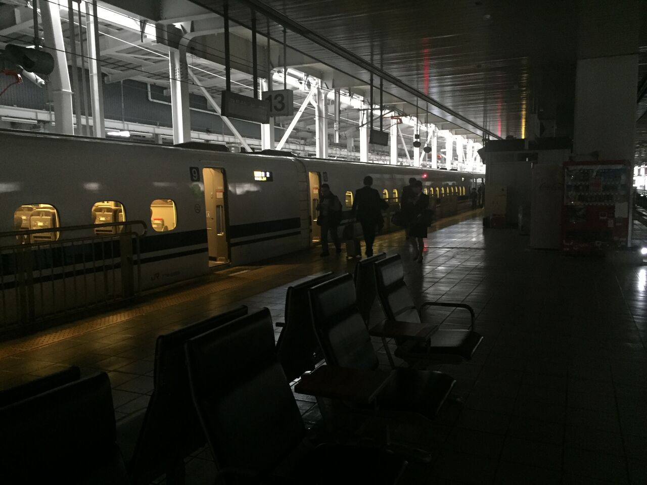 停電して真っ暗なホーム。