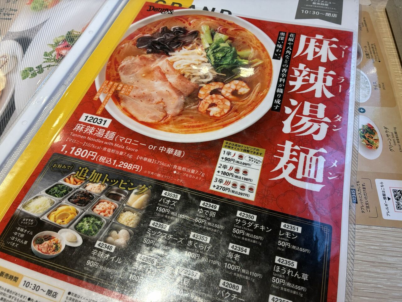 デニーズの麻辣湯麵と、他の店の差は解りません。