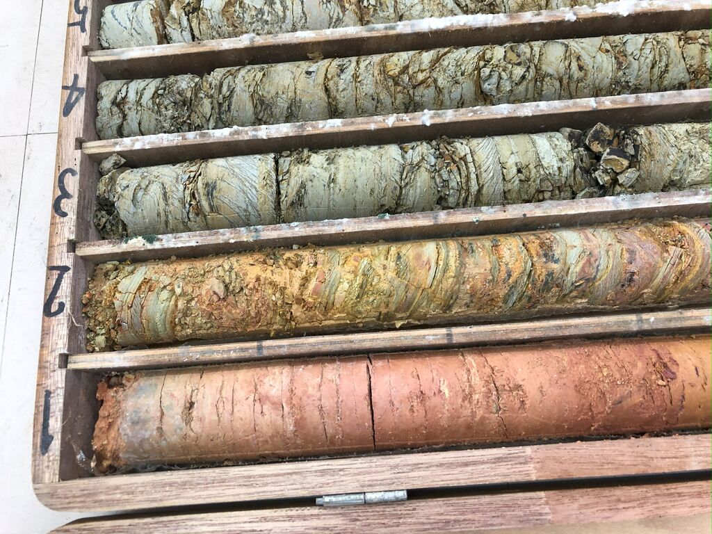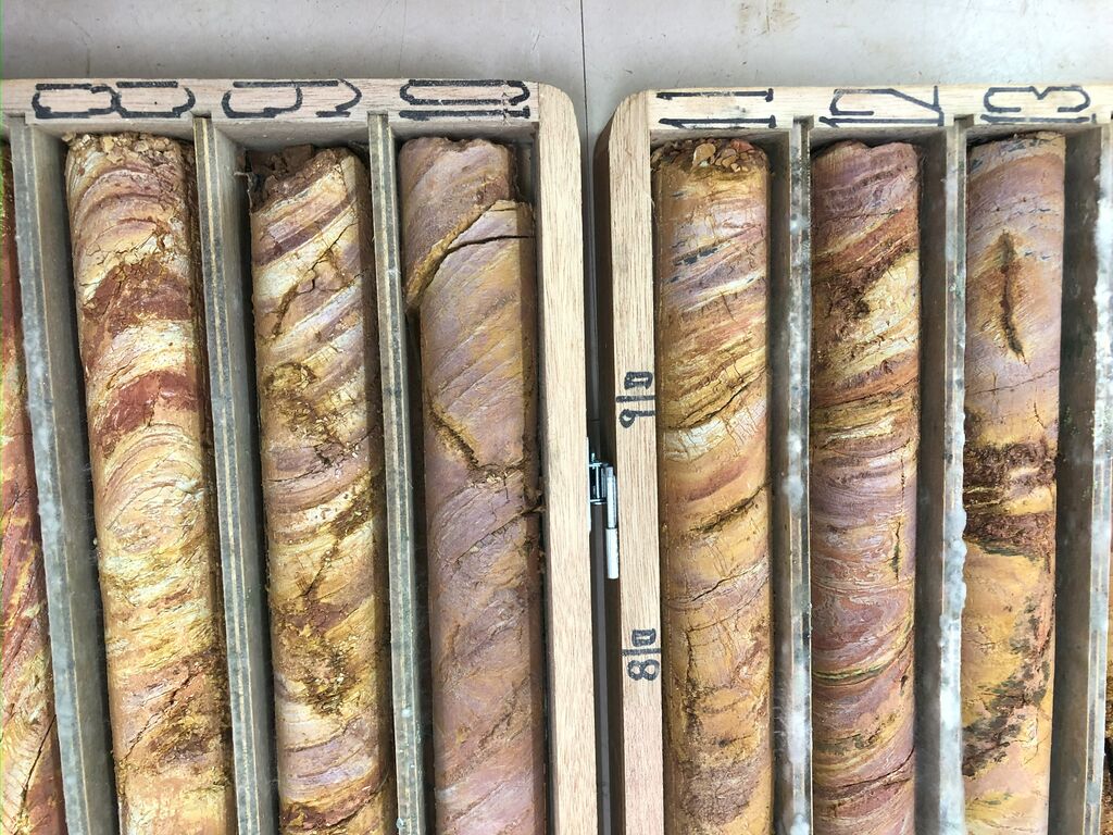 見た目では分かりにくいかも知れませんが、風化が進行して結構軟質なんです。カッターでコアパックを切っている跡が残っているのがわかりますか?柔らかいので、採取時にコアチューブに大人しく入ってくれたのはオペレーターに結構な腕があったんだと思います。