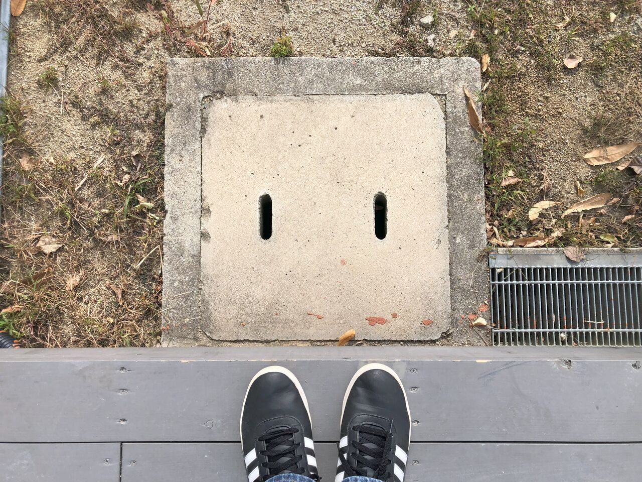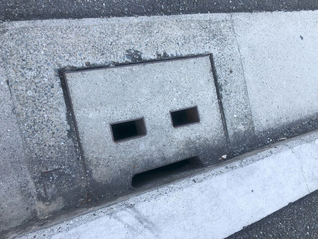コンクリート製の街渠にある蓋なのですが、いくつも並んで配置されています。
