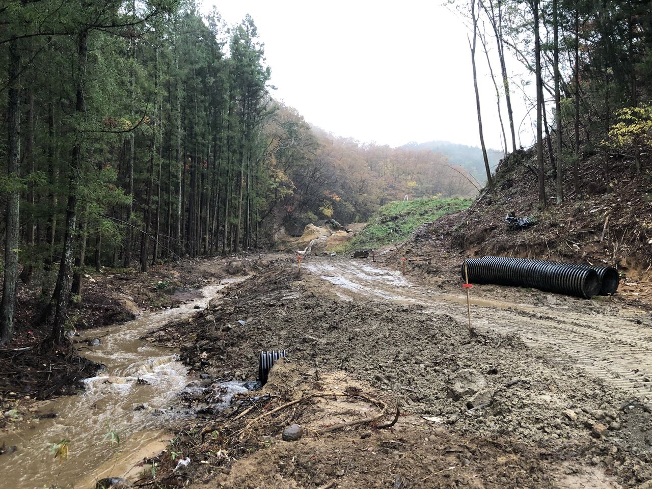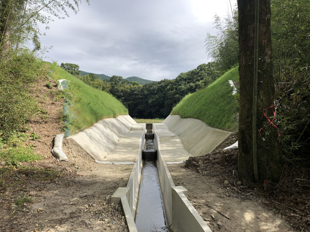 そして、復旧された堤体は白く見える部分です。