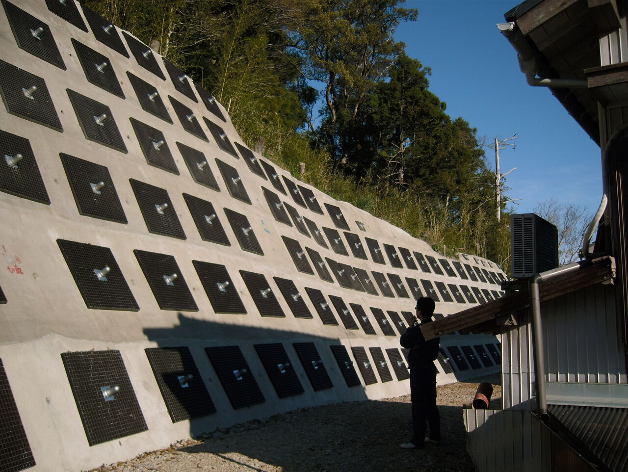 この現場は、いろいろと諸事情があってモルタル吹付を採用せねばならなかったのですが、受圧板についてはグリーンパネルが最も比較評価が高かったのです。記憶が薄いですが、受圧面積、コストだったと思います。当時は製品も少なかったので、比較は簡単だったかも知れません。