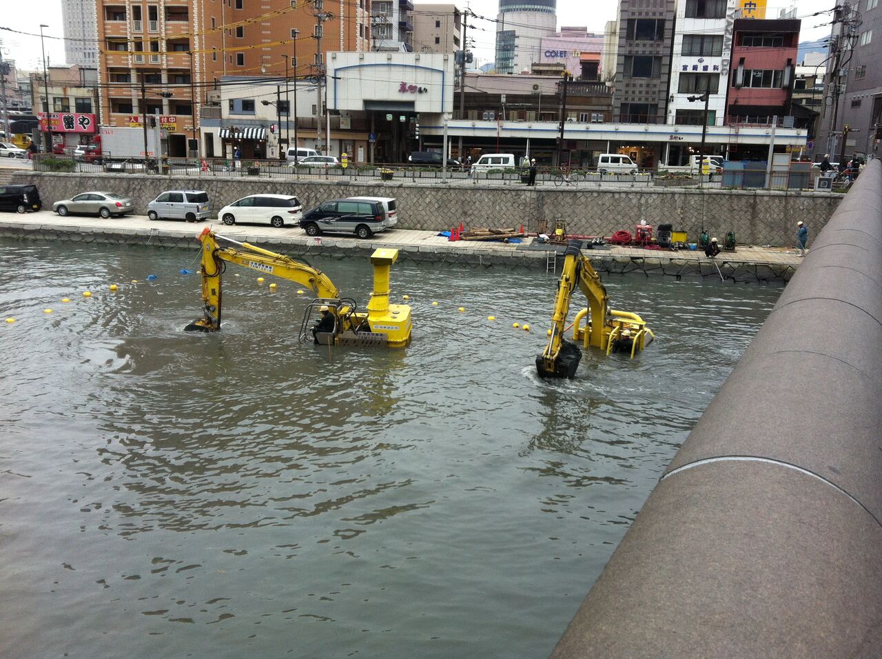 河川の水中施工バックホウって見たことありますか?(ひと昔前の搭乗員アリ型) 2024年12月04日 09:57 昔、福岡県で見たのですが、バックホウが川の中で浚渫しているんです。 オペレーターがウェットスーツ着て。 ビックリしましたね。 2013年の事なので、今だったらリモートでしょう。 エンジン排気口を上に上げて、防水仕様で川の中に入れるみたいですね。 やれば、デキル、って感じです。 「特殊な重機や機械」カテゴリの最新記事 タグ :#バックホウ#福岡 < 前の記事次の記事 > コメント コメントフォーム 名前 コメント 記事の評価 リセット リセット 顔 星 情報を記憶 コメントを投稿する