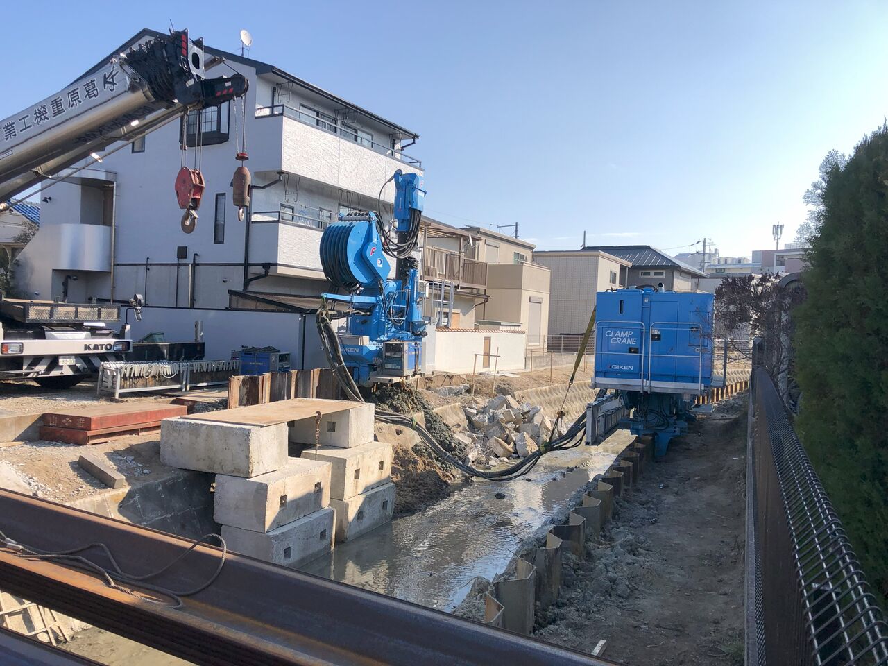 【関連記事(河川改修工事 クラッシュパイラーの施工ヤード)】