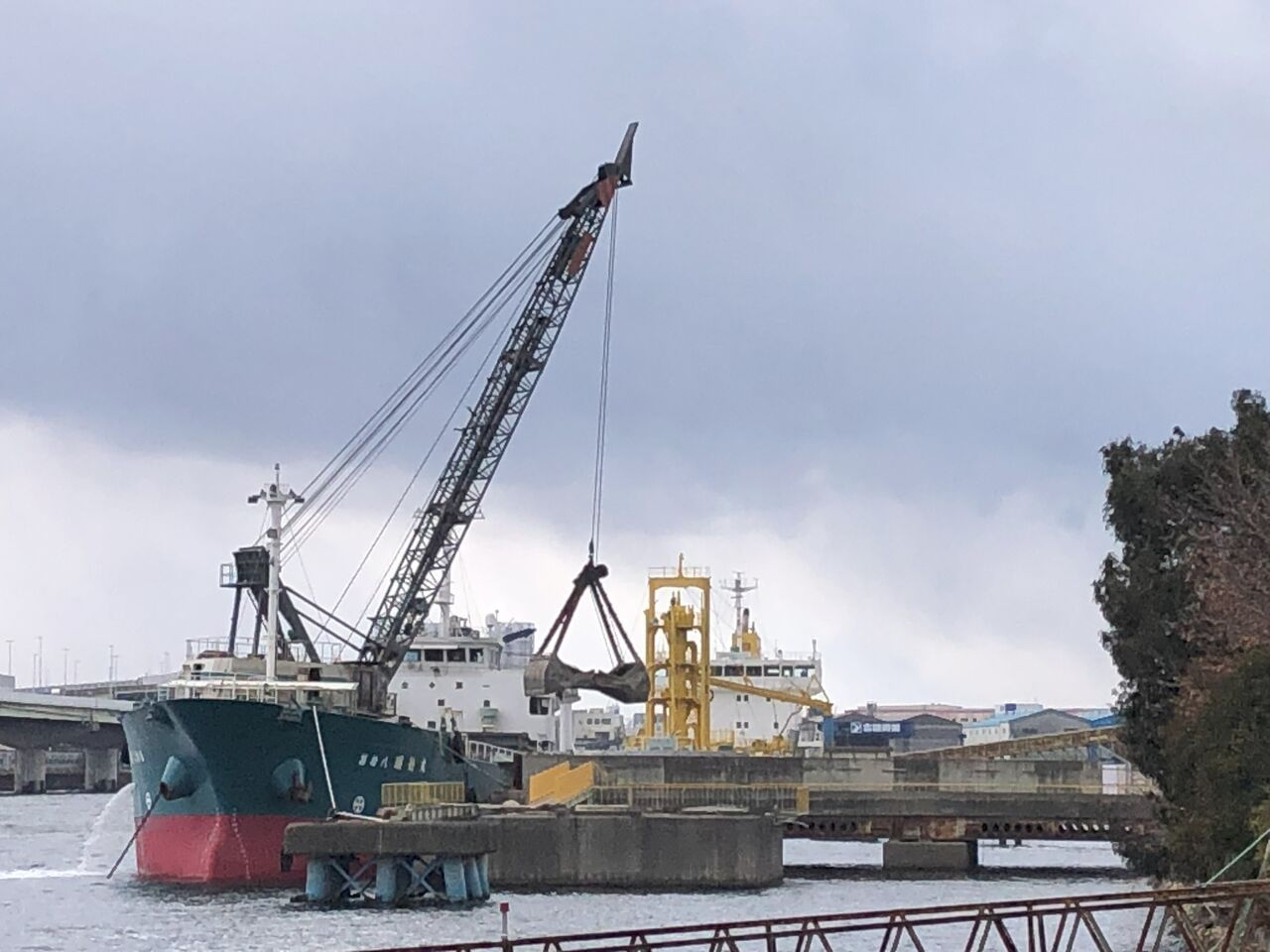 海上で海底の砂をすくい上げて港で降ろす作業なんかをしています。