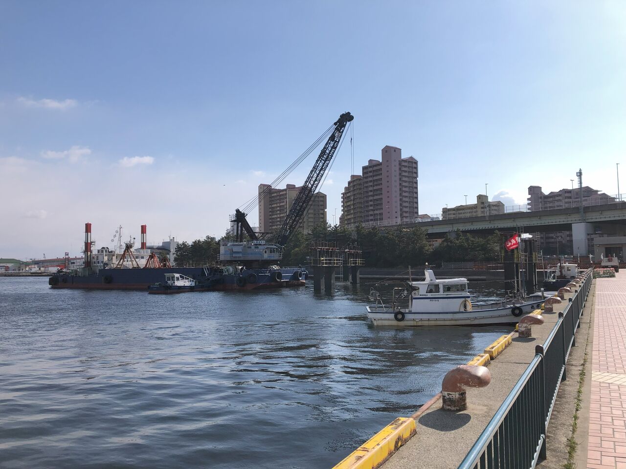 そんな港でクレーン台船をみかけますが、作業中の台船を見ることがでたので紹介します。