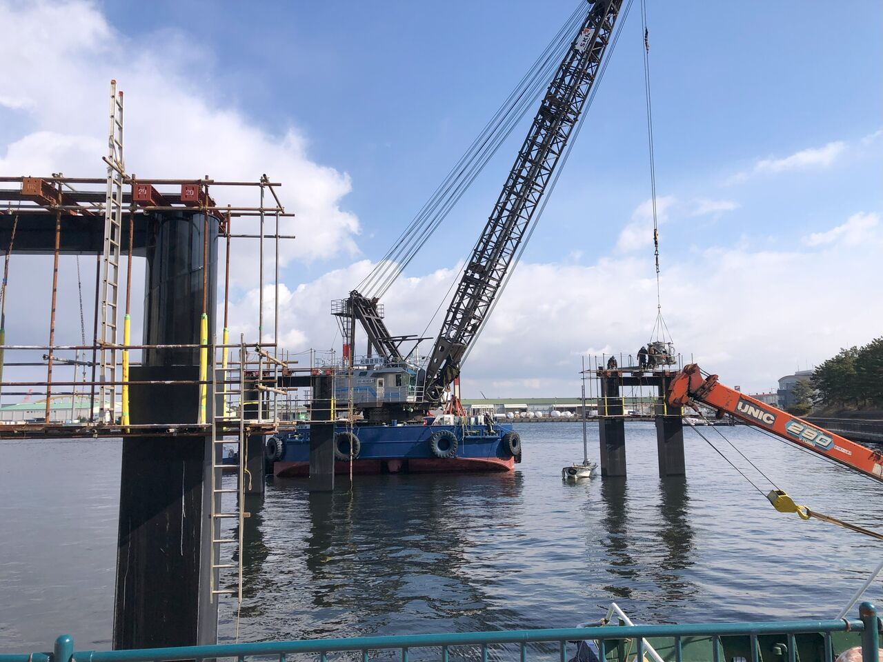 >>>クレーン台船は都市河川工事で必須の重機?船?