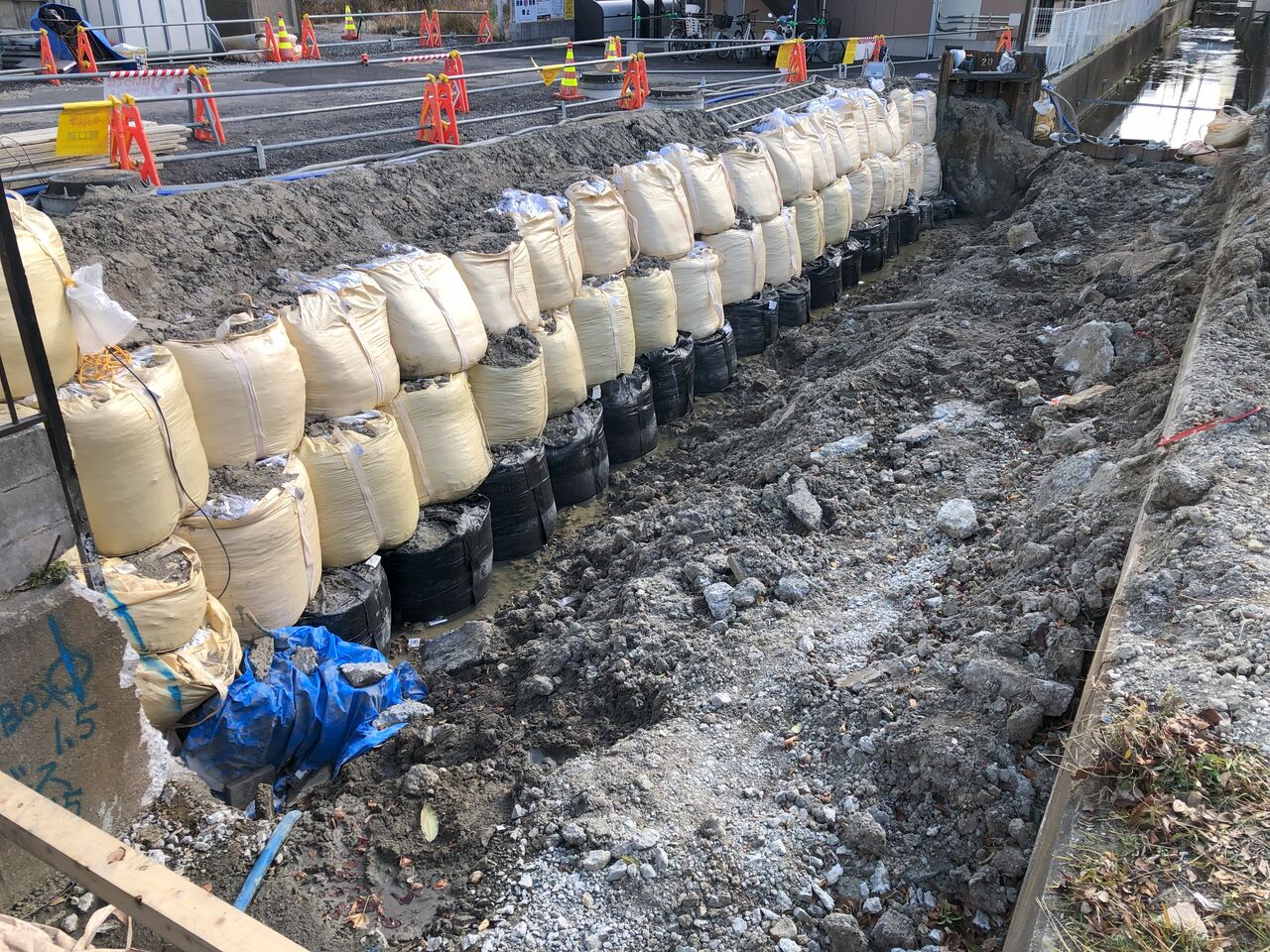 そう、例えば、下の写真のように、黒、白の大型土のうが積んであっても、全部、大型土のうだよねーという感じだと思います。