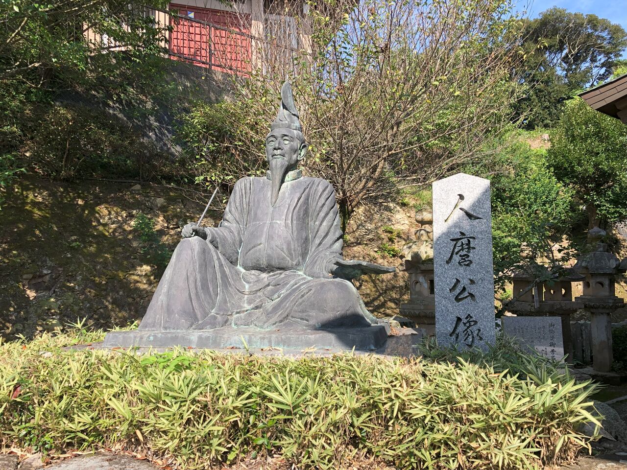 本殿の脇に、柿本人麻呂公の銅像があります。