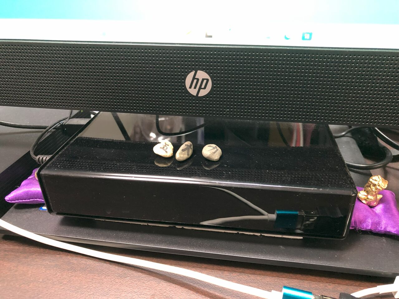 ちょうどモニターの下に置いてあるHDDの上に並んでいます。