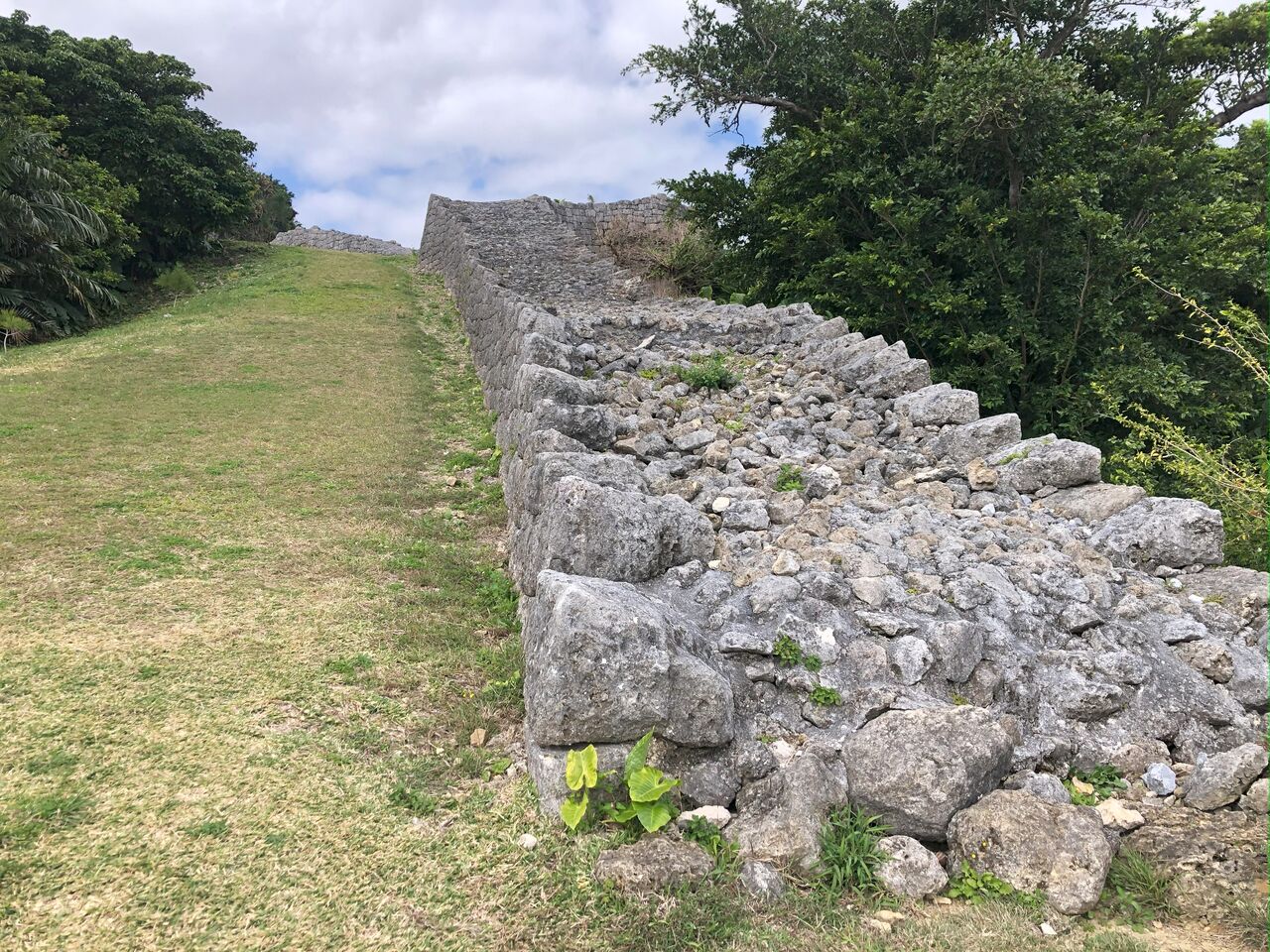 海風や台風の直撃など、気象条件的に厳しい立地であるうえに山城なので、本州の戦国時代の城とは全く異なった石垣の造りということでしょう。