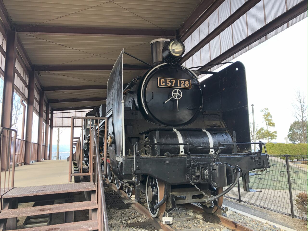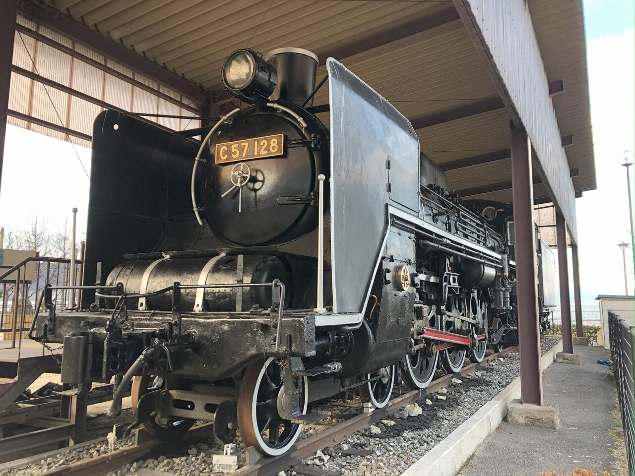 蒸気機関車 C57-128号 滋賀県大津市 におの浜県立武道館近くの公園に展示 2025年02月19日 13:04 蒸気機関車「C57 128号」 におの浜にある県立武道館近くの公園に展示。 滋賀県大津市 (琵琶湖畔の大津市遊びの森SL公園?) いろいろな所を展示されてきて、1991年に、ここへ来たとされています。 屋根付きで、保存状態は良い状態が継続されていると思われます。 やはり、屋根は重要ですね。 屋根の先端?から、垂直壁を下ろしているので、防雨性能は高い屋根だと思います。 細かいところに気配りがされています。 素晴らしい展示ですね。 「SL」カテゴリの最新記事 タグ :#滋賀 < 前の記事次の記事 > コメント コメントフォーム 名前 コメント 記事の評価 リセット リセット 顔 星 情報を記憶 コメントを投稿する