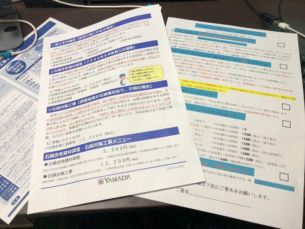家電量販店でエアコンを眺めていると、気になる用紙が商談スペースに。