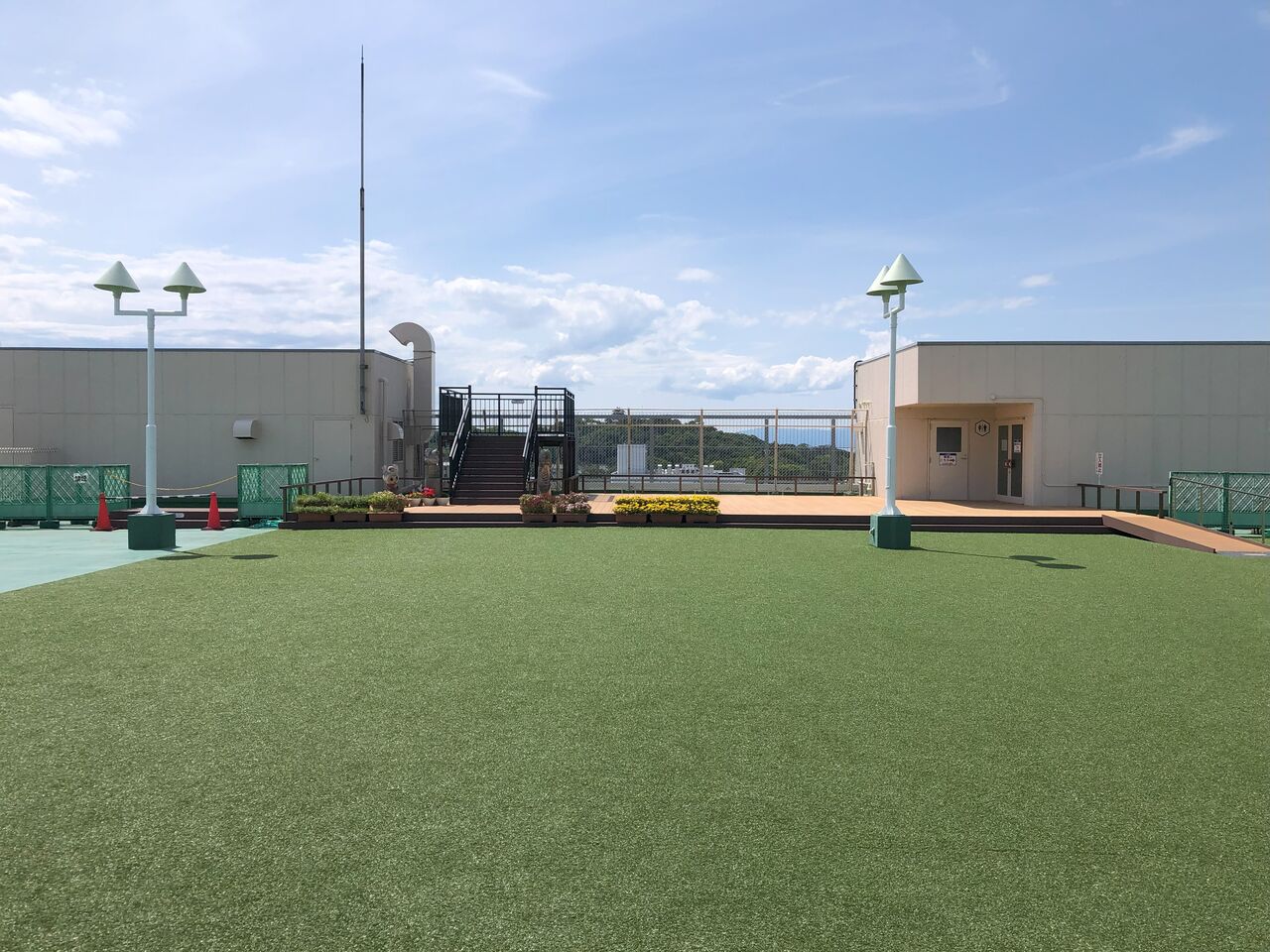 アルプラザ彦根の屋上には人工芝の広場と展望デッキ?があります。