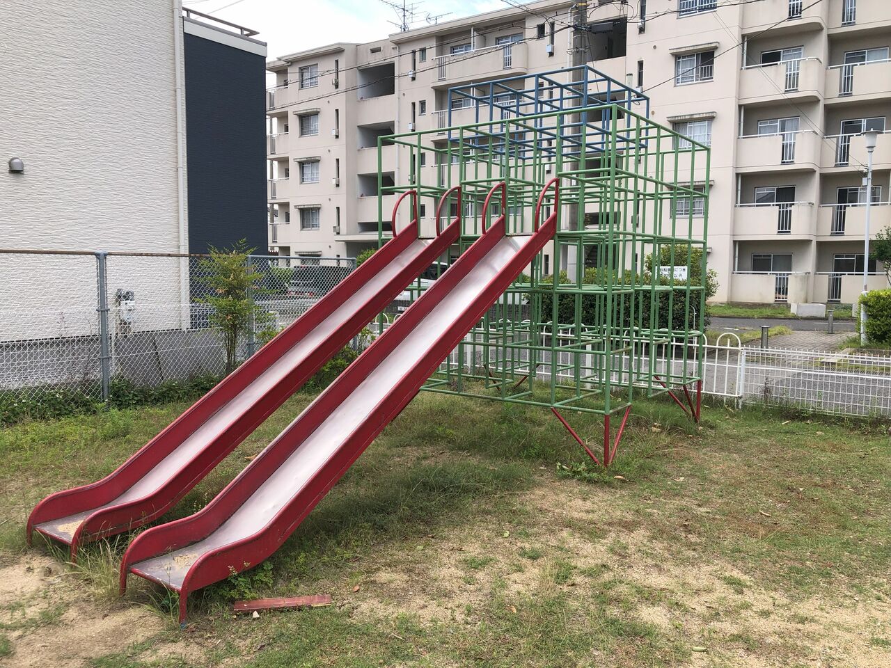 0-府営泉大津小松住宅 公園(泉大津市)見つけました!ジャングルジム直結ツイン滑り台!レトロ遊具です 2025年07月02日 07:30 「府営泉大津小松住宅 公園」 大阪府泉大津市小松町13 ランニングでシーパスパーク(泉大津市)の近くを回って帰り路で見つけました! レトロ遊具! ジャングルジム直結のツイン滑り台! これは、珍しい! 以前、「葛の葉1号公園」にも似たようなのがあったのですが、それは、シングルでした。 残念ながら「葛の葉1号公園」のジャングルジム直結滑り台は遊具更新で無くなりました。 でも、ツインは初めて見ました。 ぜひ、この雄姿を後世に伝えて欲しい! 残してくださいね、大阪府さま!お願いします。 見た目はまだまだ使える状態でしたよ。 「泉大津市の【公園】を探索」カテゴリの最新記事 タグ :#レトロ遊具 < 前の記事次の記事 > コメント コメントフォーム 名前 コメント 記事の評価 リセット リセット 顔 星 情報を記憶 コメントを投稿する