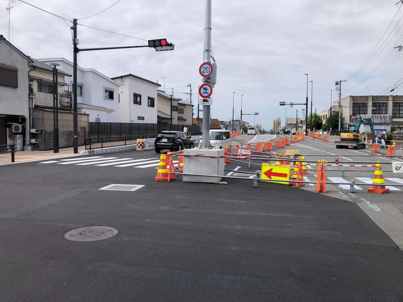 今度は、信号機の基礎を仮設段階での供用に対するため現場プレキャスト基礎で運用していました。