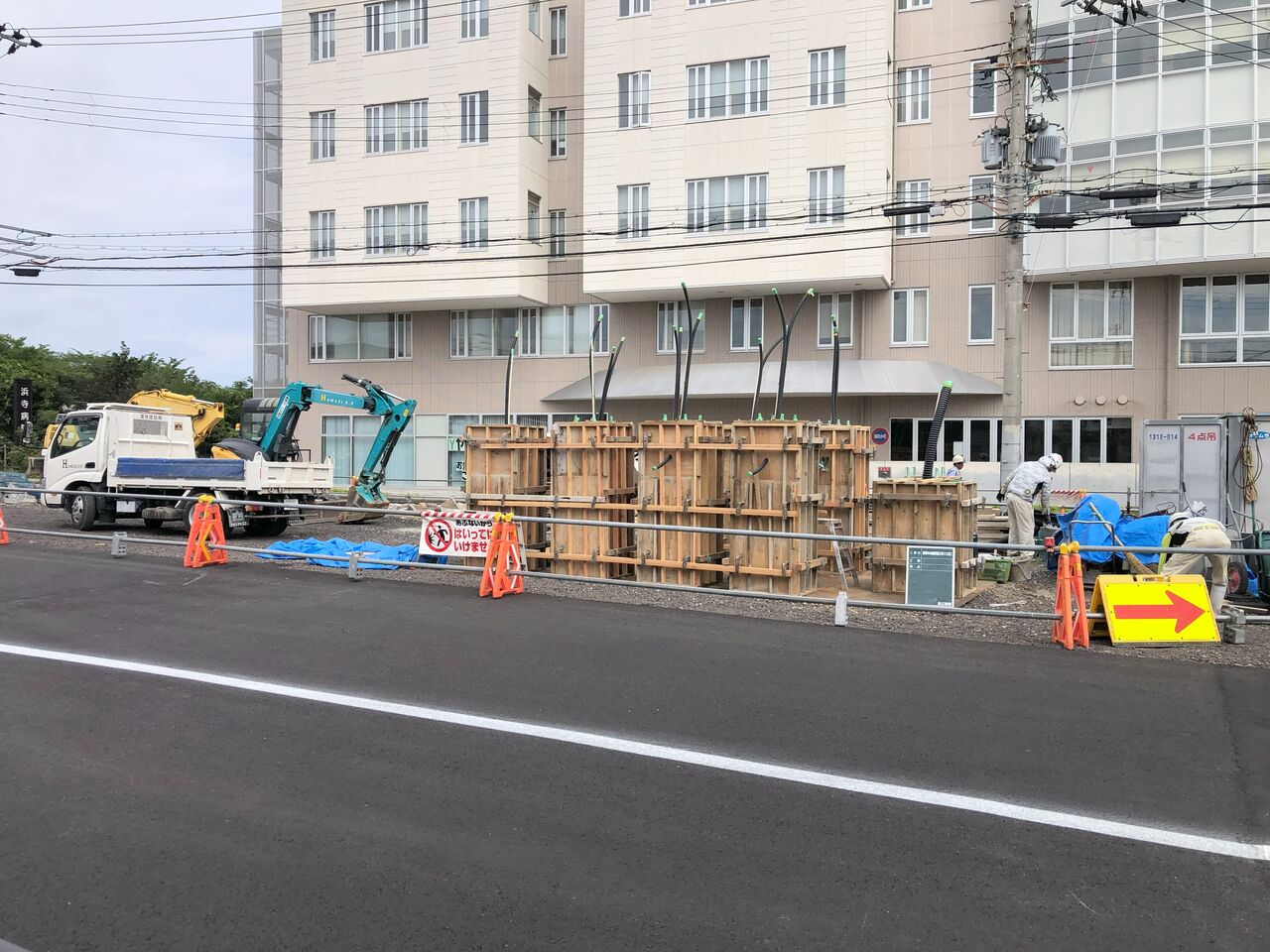 まさに今、生コン打って養生中ですね。