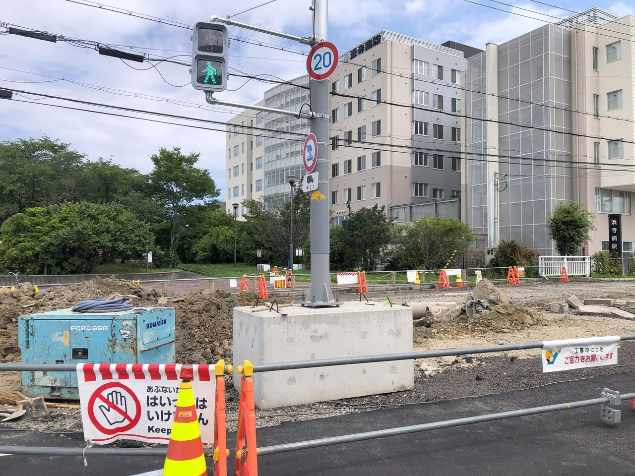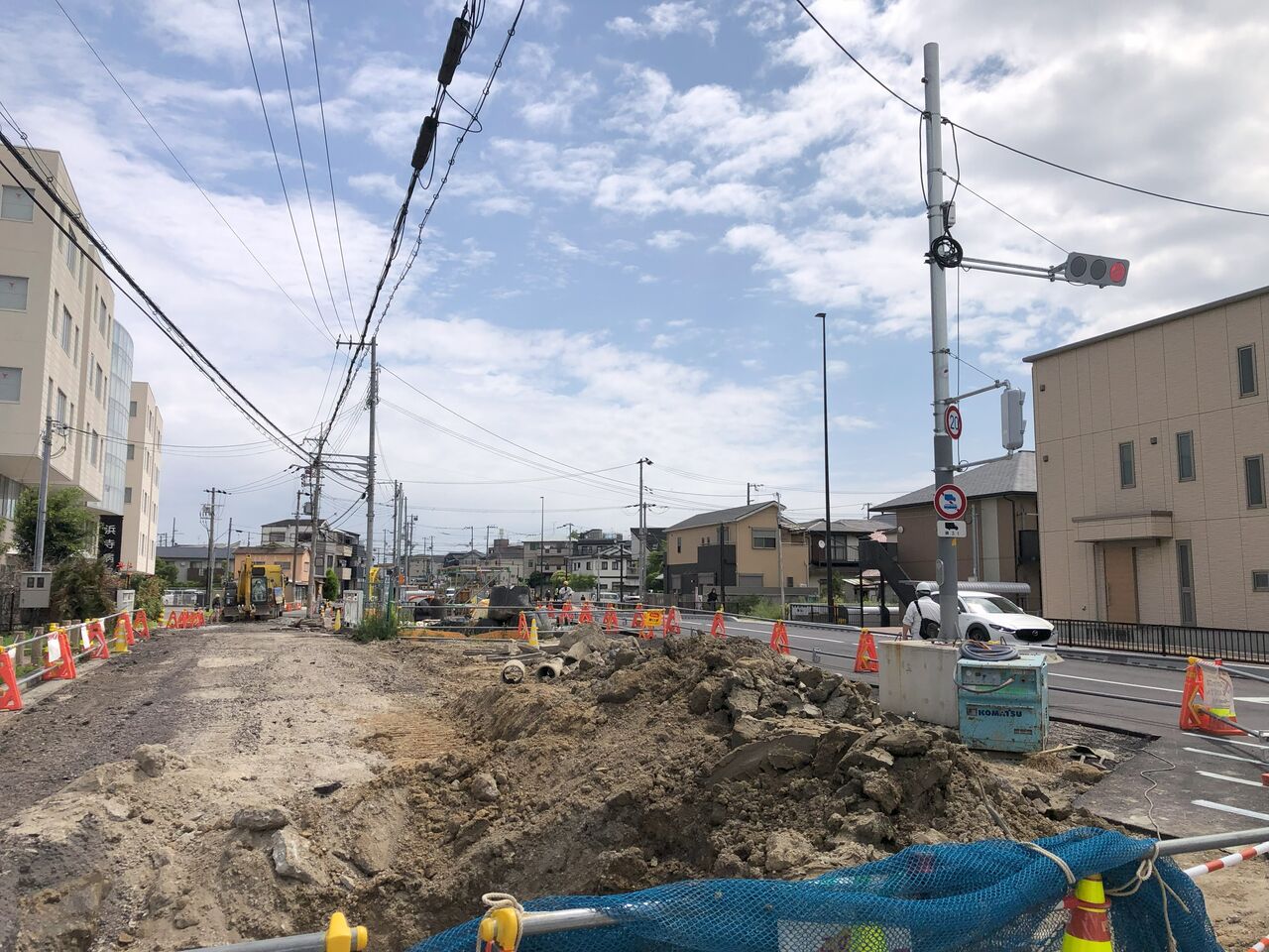 現在施工中の半分が完成する暁には仮設置きの信号基礎も埋設設置されることでしょう。