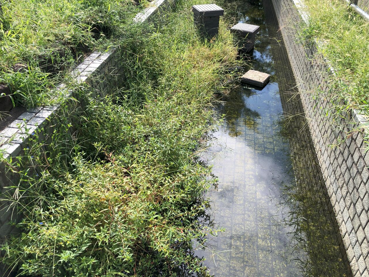 >>泉大津市役所横で見つけたカゴマットを使った多自然っぽい護岸に工夫を感じた
