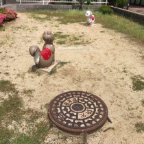 「無名の公園」 大阪府泉大津市東雲町15 集合住宅(マンション・アパート)の間にある公園(広場)。 小さい子供が跨って乗れる動物置物が2体。 公園の名前の表示は無いです。 恐らく、民間の公園(広場)でしょう。 真ん中に「防火水槽」(防火貯水槽)のマンホ ...