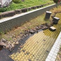 泉大津市役所横(恐らく東雲公園)で見つけたカゴマットを使った多自然っぽい護岸に工夫を感じた(安全性・見栄え・コストの狭間で)