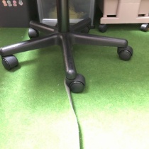 「事務室の床マット」 椅子のタイヤでフローリングがへこむのが嫌で、ゴルフのパター練習用のマットを切って並べて対応していました。 しかし、写真のようにタイヤが通るたびに捲れはじめ、とうとう機能を失いました。 案外、ストレスになります。 隙間が空いて、タイ ...